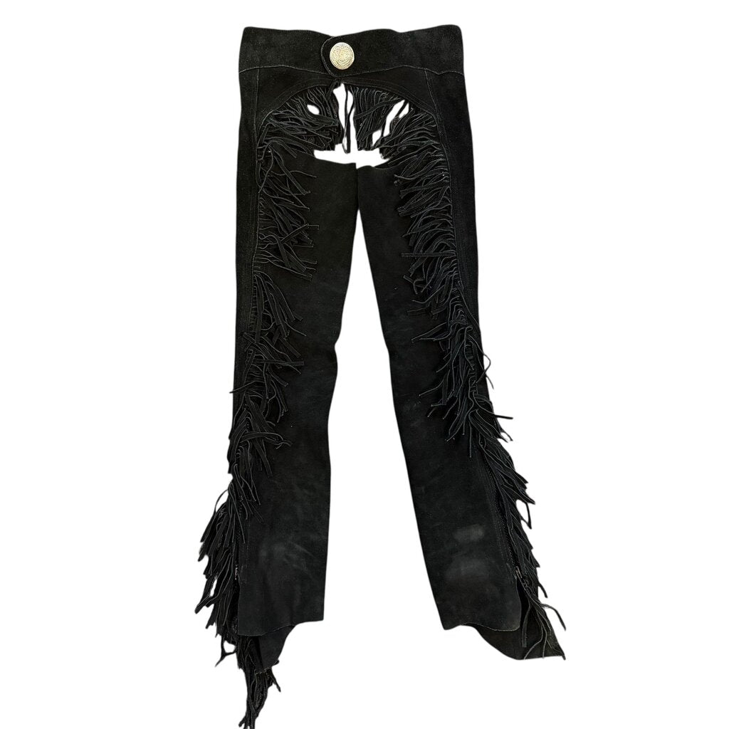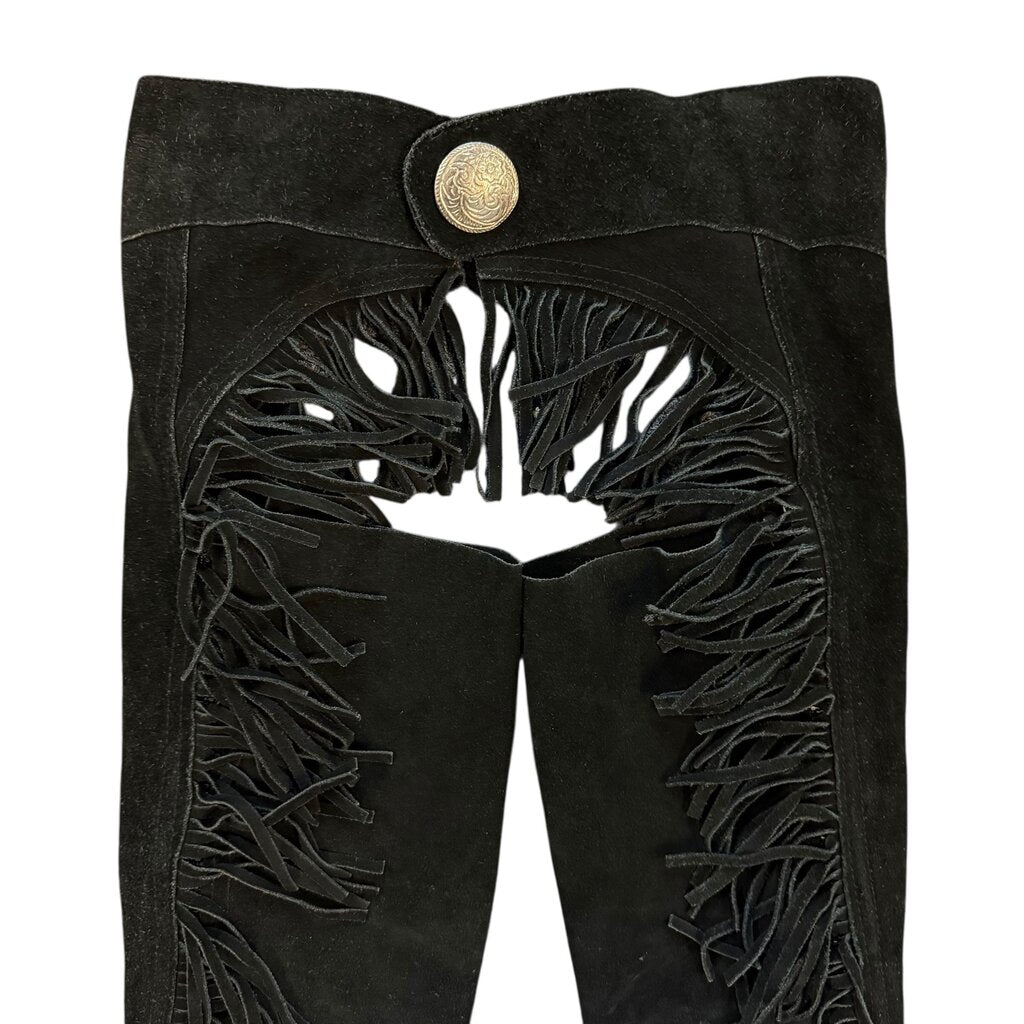 Black leather chaps with fringe