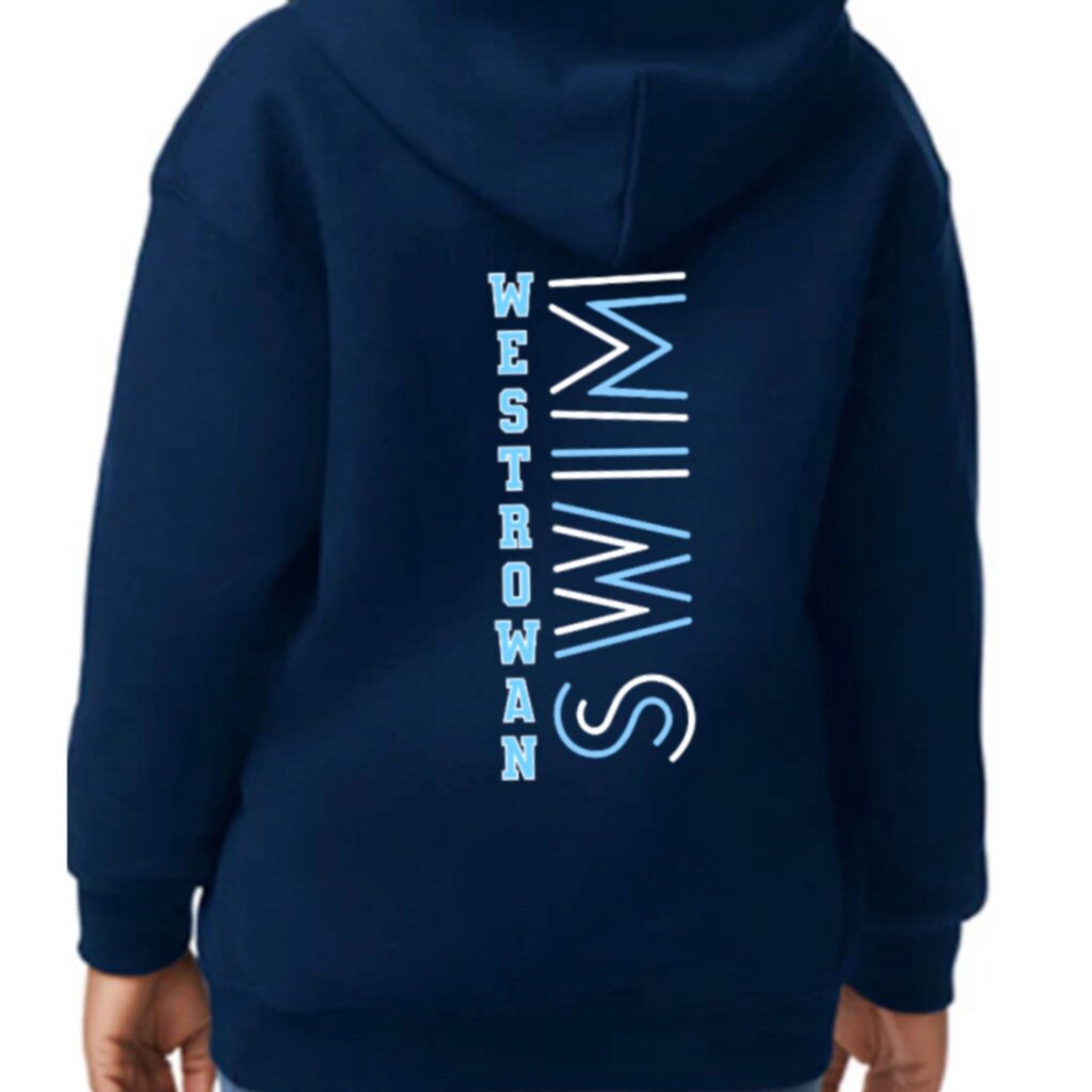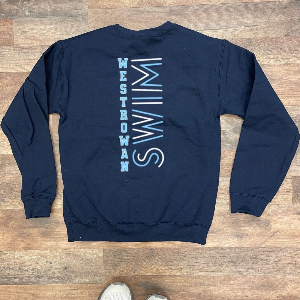 WR Swim with circle logo printed on navy. Available in short sleeve, long sleeve, crew neck and hoodie