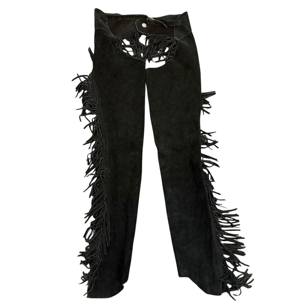 Black leather chaps with fringe