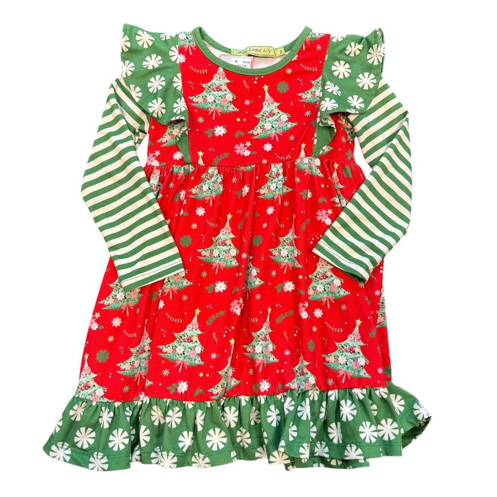- Red dress with green trim